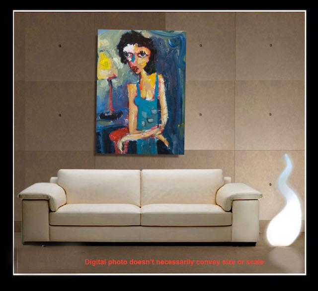 Second Virgin Hand-PaintedA solitary figurative sits suspended in a quiet interior, where color and gesture soften the sense of time. Loose brushwork and muted light suggest waiting and reflection—moments elongated, emotions lingering between stillness and thought.
