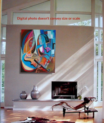 Second Virgin Hand-PaintedTwo abstract figures entwined through music and color, their forms merging into a shared emotional space. The violin becomes a quiet bridge between them, where rhythm, memory, and intimacy unfold in layered harmony.