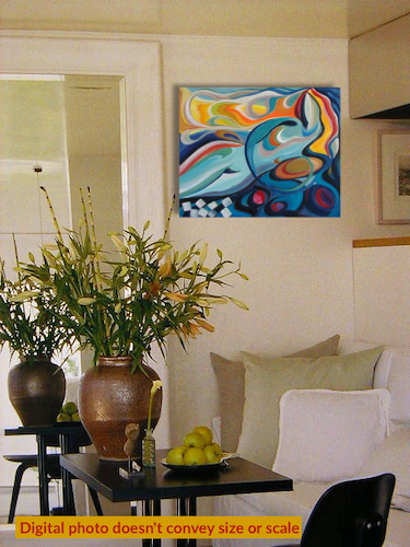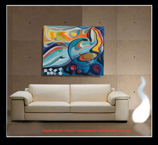 An abstract of my wave-flow sweeping composition of fluid lines and layered color, where warm currents glide through cool depths. The painting evokes movement and energy. .
