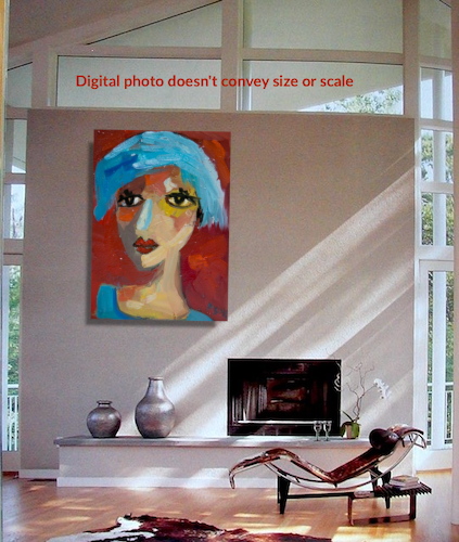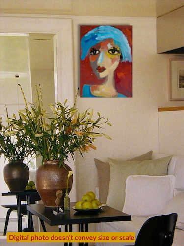 Second Virgin Hand-PaintedA vivid portrait set against a warm red field, where cool blues and softened flesh tones create emotional contrast.