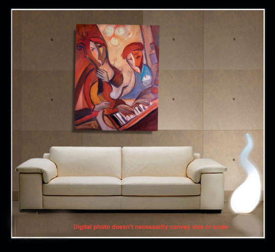 Second Virgin Hand-PaintedTwo musicians lean into a quiet collaboration, their forms softened by warm, layered color. The piano and string instrument intertwine visually, suggesting harmony built on listening.