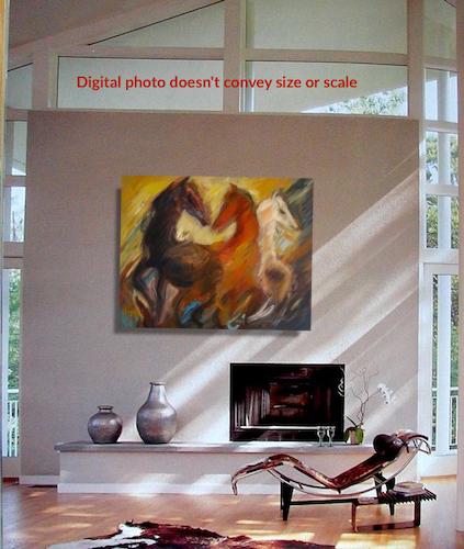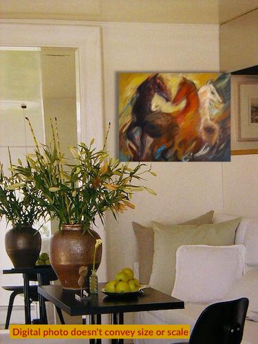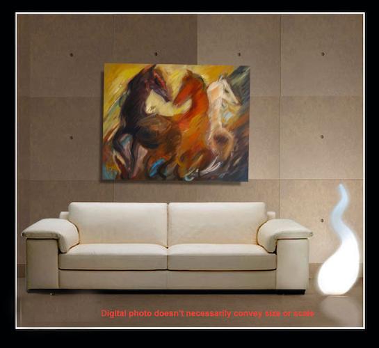 Second Virgin Hand-PaintedA surge of wild horses in motion and raw energy, where horses collide with wind and color. Fiery reds and deep earth tones sweep across the canvas, dissolving form into movement. The painting captures untamed force and instinct power.