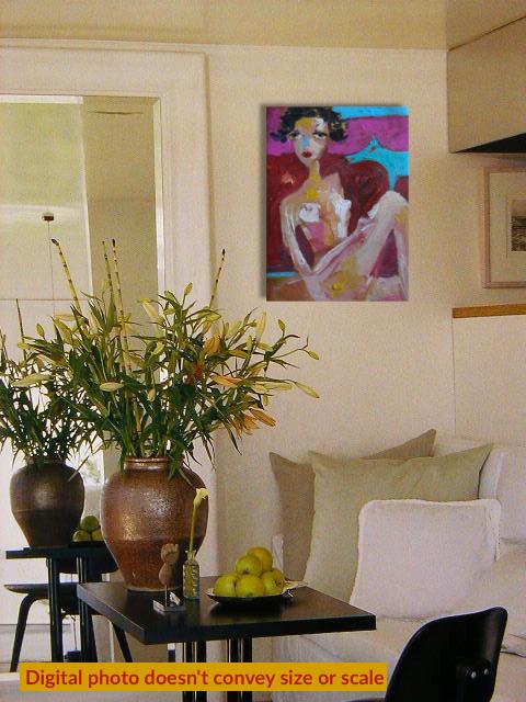 Second Virgin Hand-PaintedA seated contemporary nude figure caught between comfort and unease, painted with raw, tactile strokes and saturated color. .