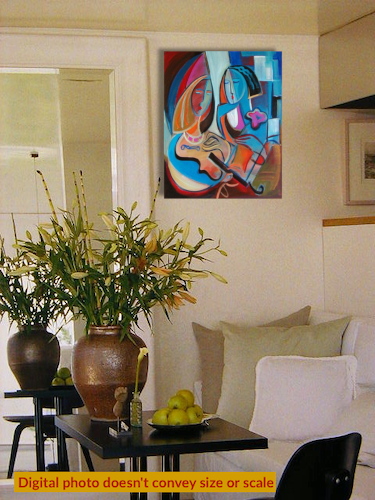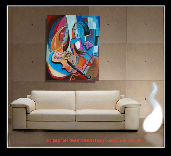 Second Virgin Hand-PaintedTwo abstract figures entwined through music and color, their forms merging into a shared emotional space. The violin becomes a quiet bridge between them, where rhythm, memory, and intimacy unfold in layered harmony.