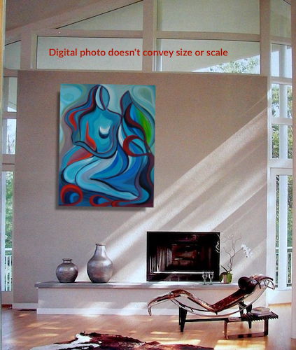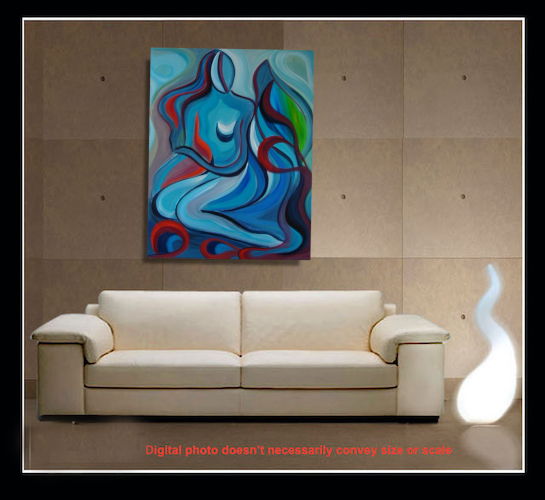 Second Virgin Hand-PaintedAn abstract wave-flow composition of intertwined forms and cool blue tones, where movement and stillness coexist. The painting evokes harmony and emotional flow,. .