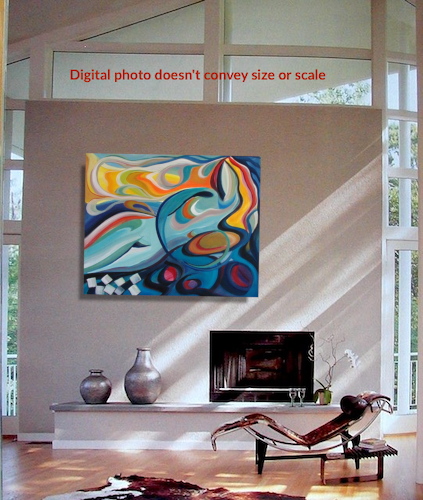 An abstract of my wave-flow sweeping composition of fluid lines and layered color, where warm currents glide through cool depths. The painting evokes movement and energy. .