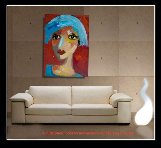 Second Virgin Hand-PaintedA vivid portrait set against a warm red field, where cool blues and softened flesh tones create emotional contrast.